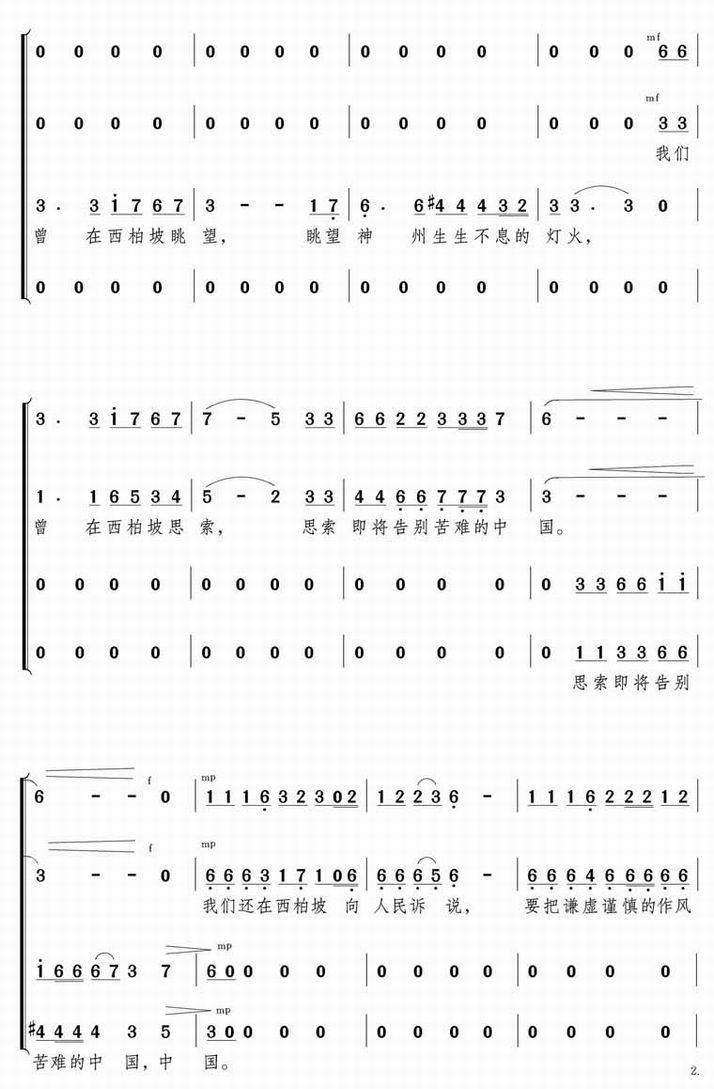 >> 又见西柏坡-四部混声合唱(简谱)