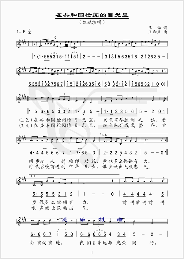 >> 在共和国检阅的目光里-刘斌(简谱线谱版)