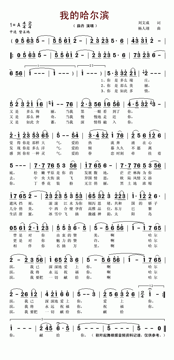 我的哈尔滨-薛丹(简谱)