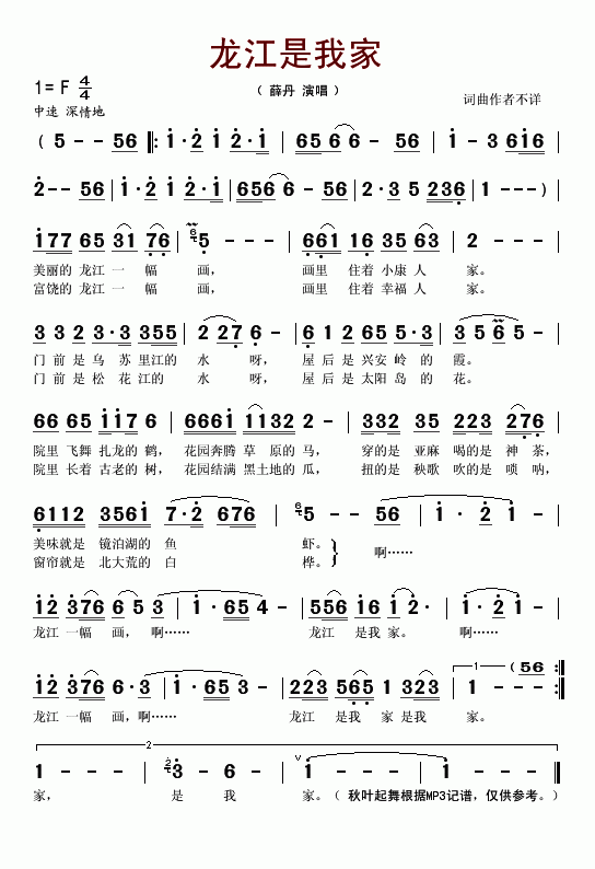 >> 龙江一幅画-薛丹(简谱)