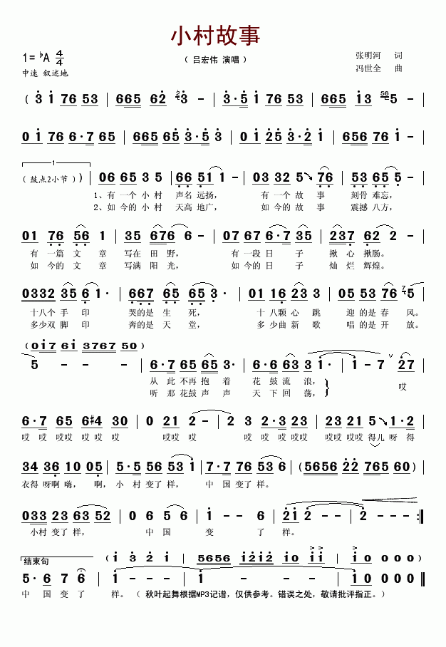 小村故事-吕宏伟(简谱)
