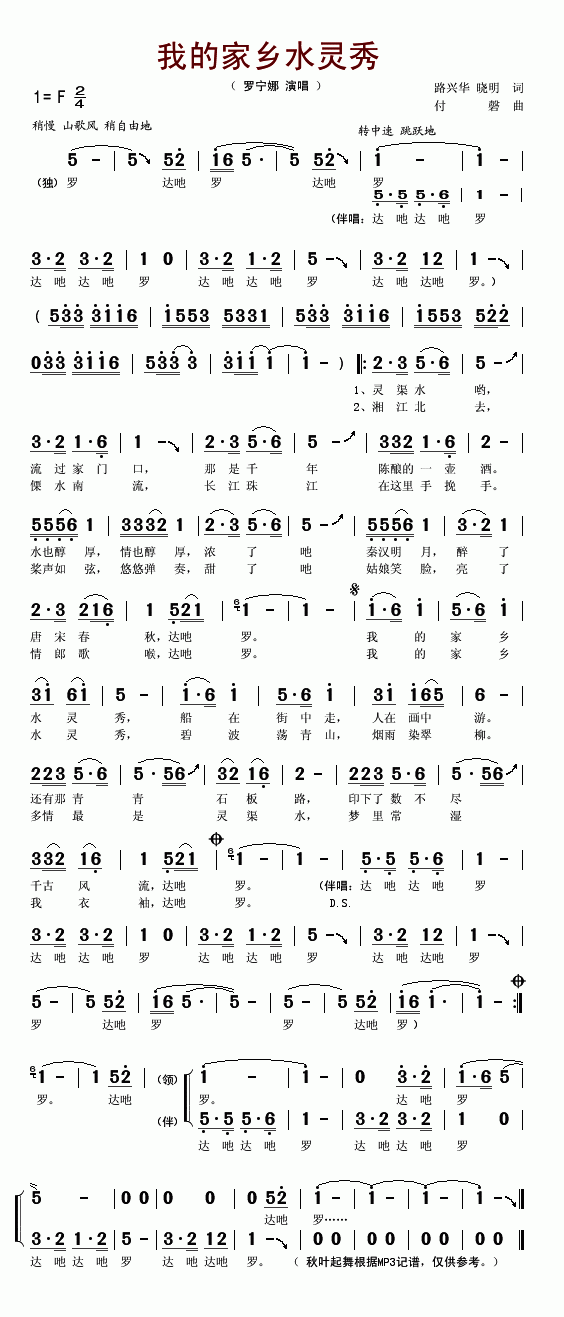 >> 我的家乡水灵秀-罗宁娜(简谱)