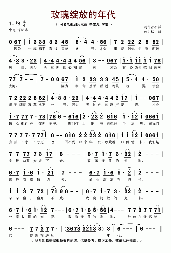 >> 玫瑰绽放的年代-辛宝儿(简谱)