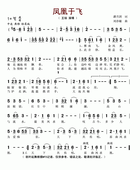 >> 凤凰于飞-王琼(简谱)