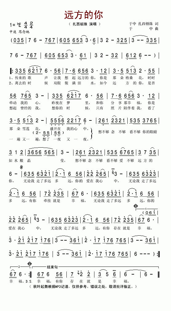 梦想的家园-扎西顿珠(《香格里拉》主题曲简谱)