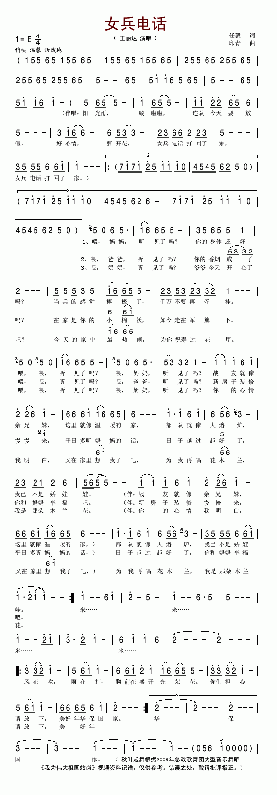 女兵电话-王丽达(简谱)