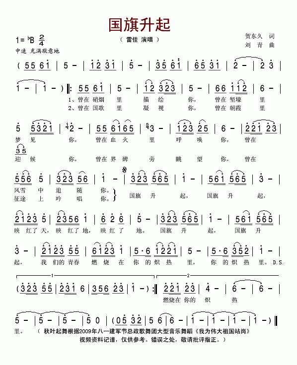 >> 国旗升起-雷佳(简谱)