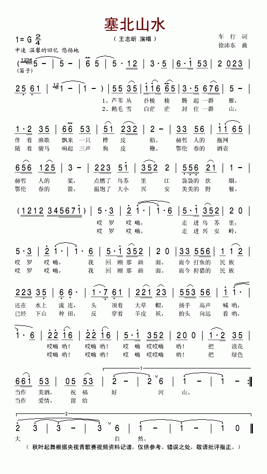 >> 塞北山水-王志昕(简谱)