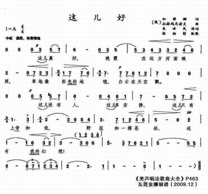 这儿好-美声歌曲(简谱)