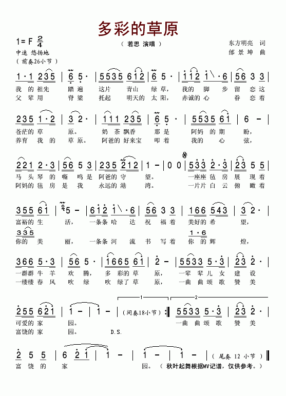 多彩的草原-若思(简谱)