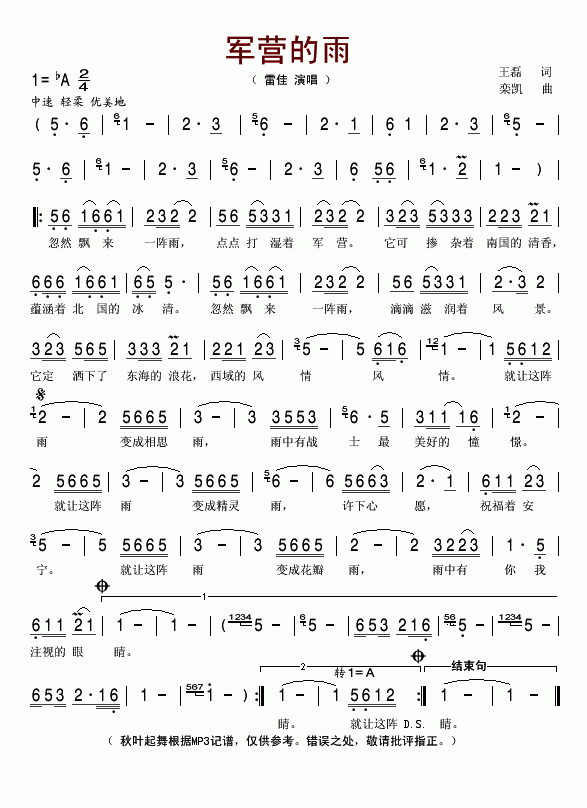对歌-雷佳 阎维文(门巴族民歌简谱)