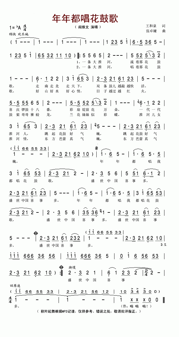 >> 年年都唱花鼓歌-阎维文(简谱)