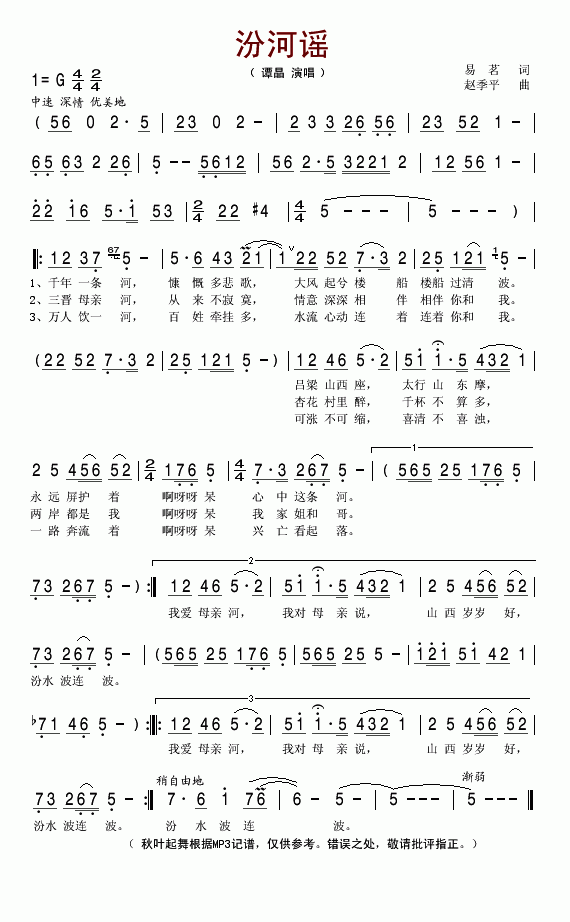 我心不变-谭晶(浙版《西游记》片尾曲简谱)
