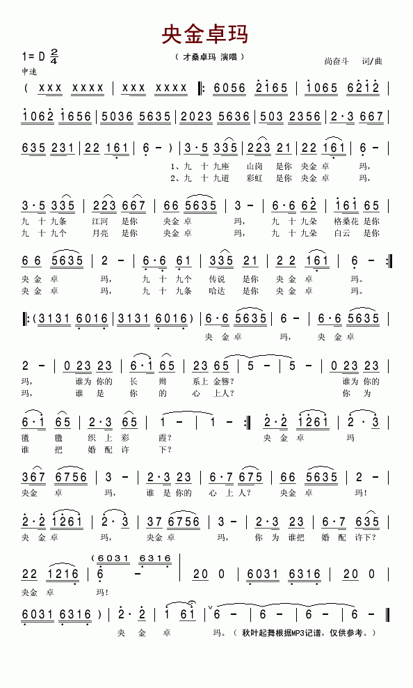 >> 央金卓玛-才桑卓玛(简谱)