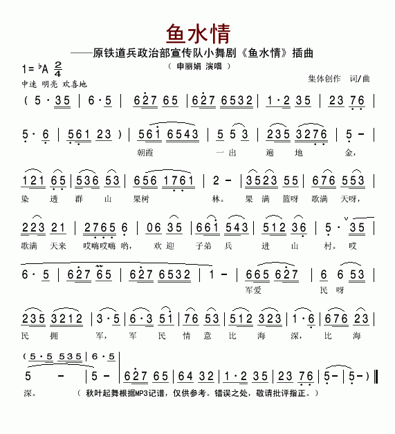 >> 鱼水情-申丽娟(简谱)
