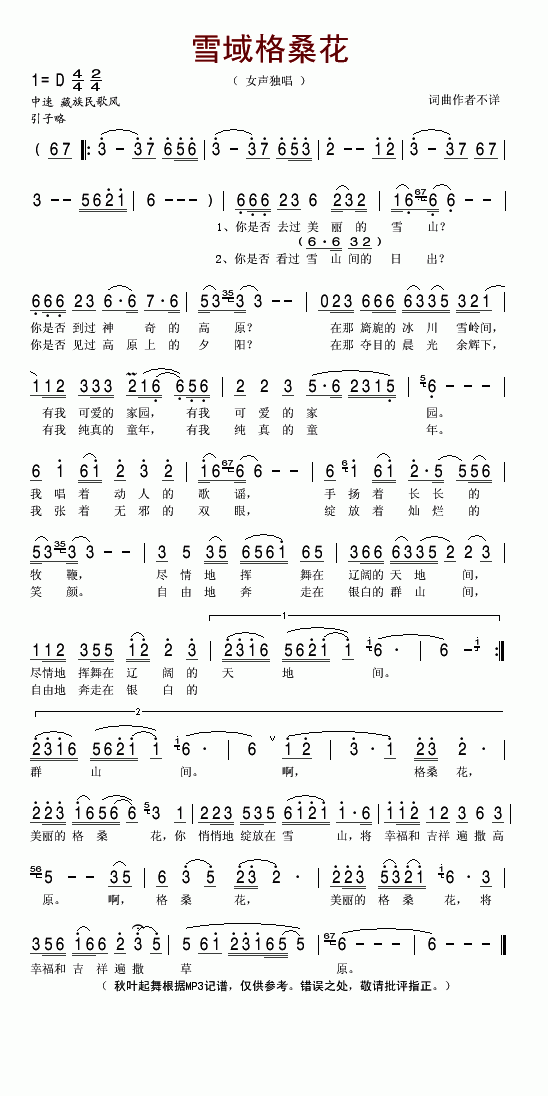 美丽的西藏-女声独唱(钢琴谱_伴奏谱)