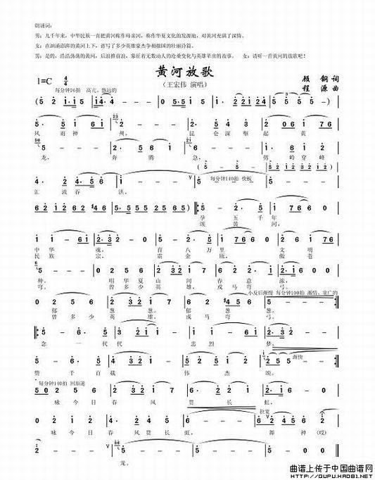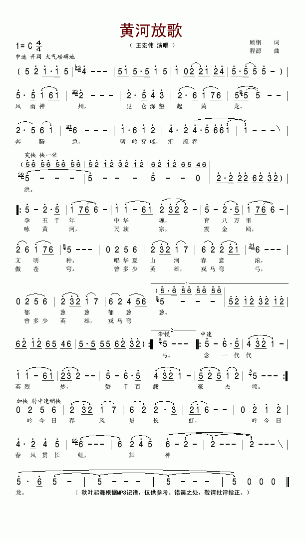 黄河放歌-王宏伟(简谱)