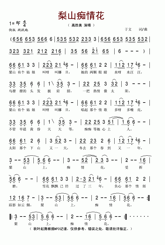 >> 梨山痴情花-高胜美(简谱)