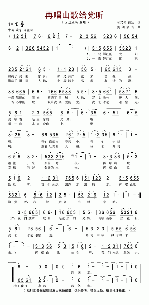 >> 再唱山歌给党听-才旦卓玛(简谱)