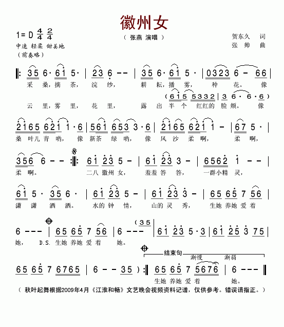 >> 徽州女-张燕(简谱)