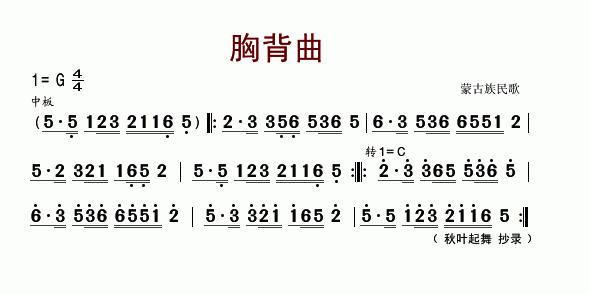 >> 胸背曲(蒙古舞练习曲)-简谱