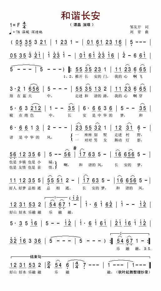 >> 和谐长安-谭晶(简谱)
