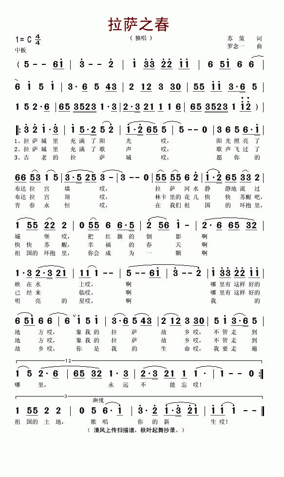 你的形象立在百姓心间-独唱歌曲(简谱)