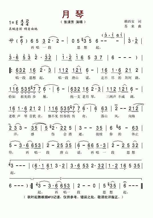 >> 月琴-张清芳(简谱)