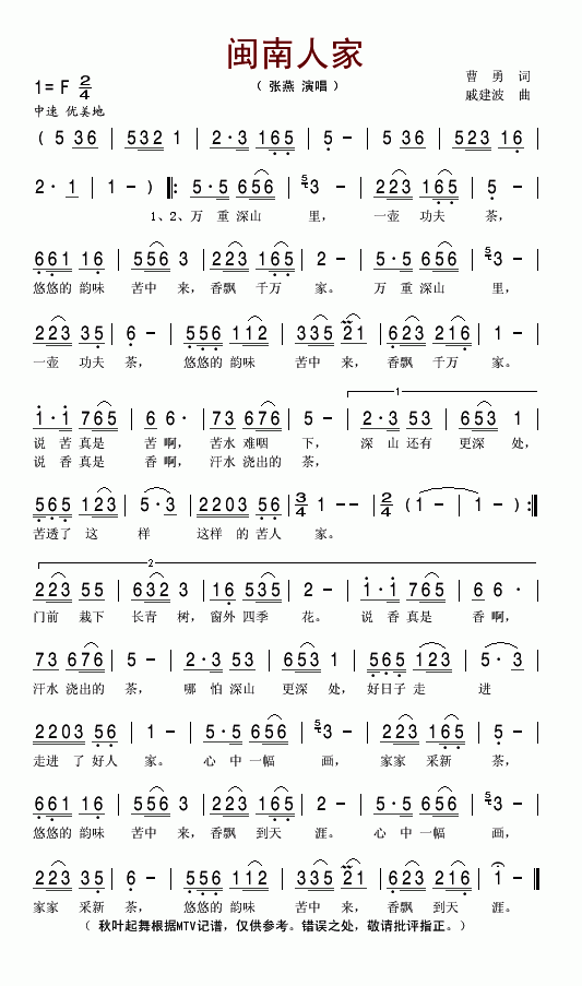 >> 闽南人家-张燕(简谱)