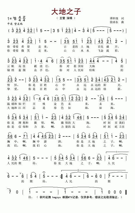 节日欢歌-王莹(2005年春晚歌曲简谱+线谱)