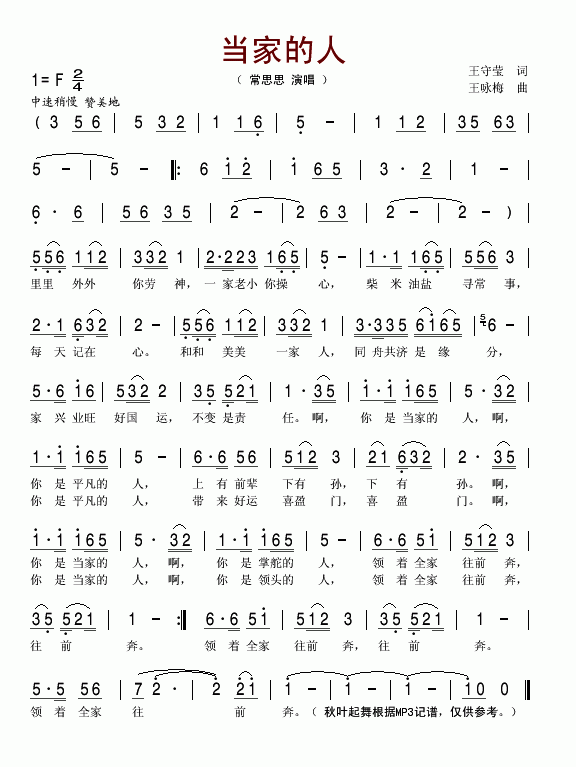 当家的人-常思思(简谱)