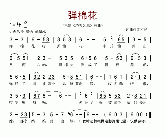 弹棉花-简谱(电影《巧奔妙逃》插曲)