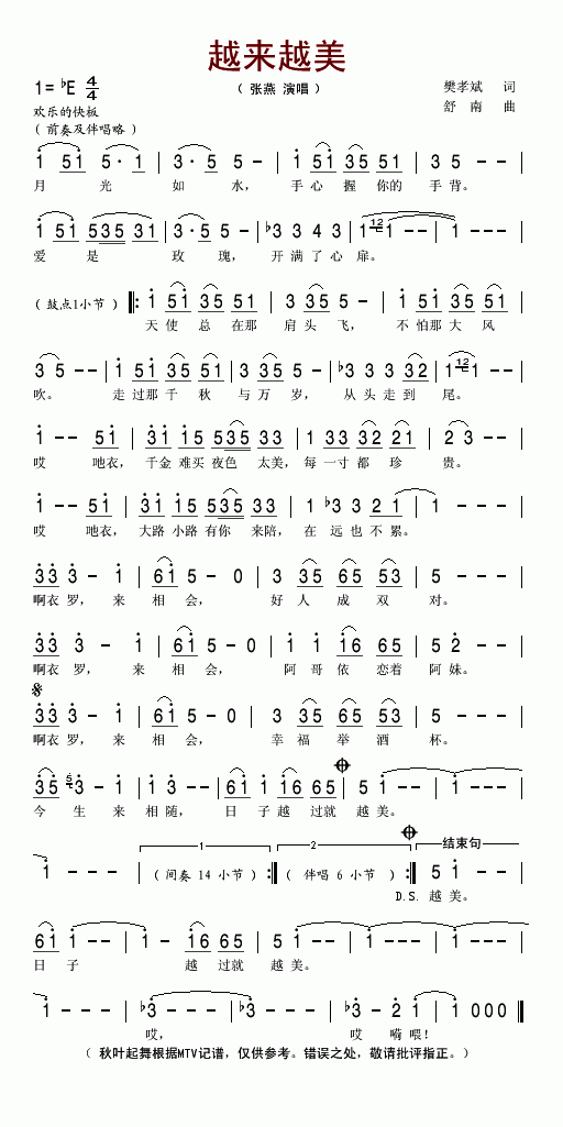 >> 越来越美-张燕(简谱)