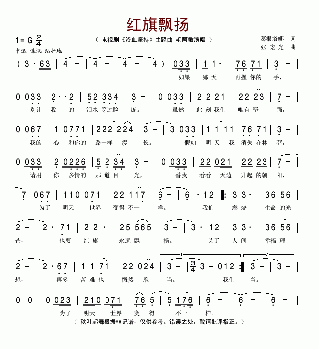 >> 红旗飘扬-毛阿敏(简谱)