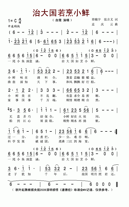 治大国若烹小鲜-白雪(简谱)