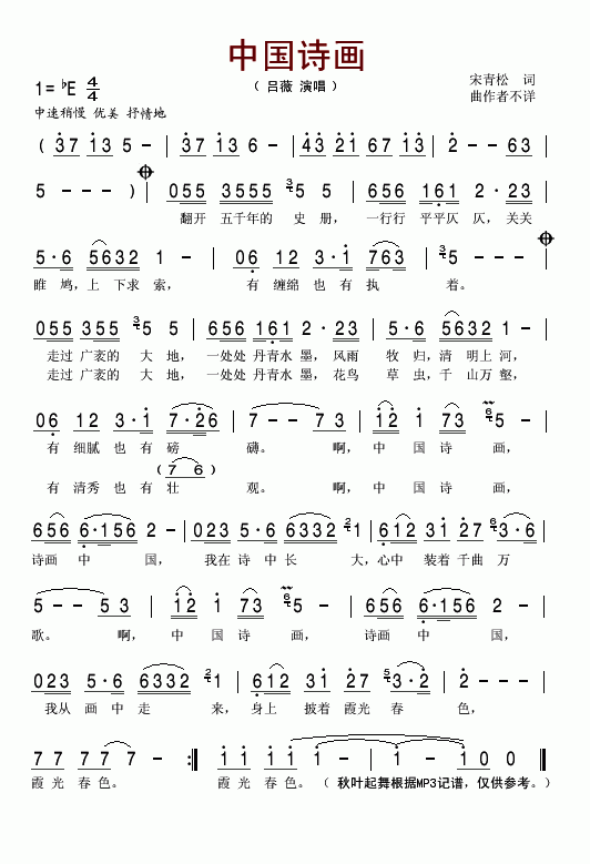 >> 诗画中国-吕薇(简谱)