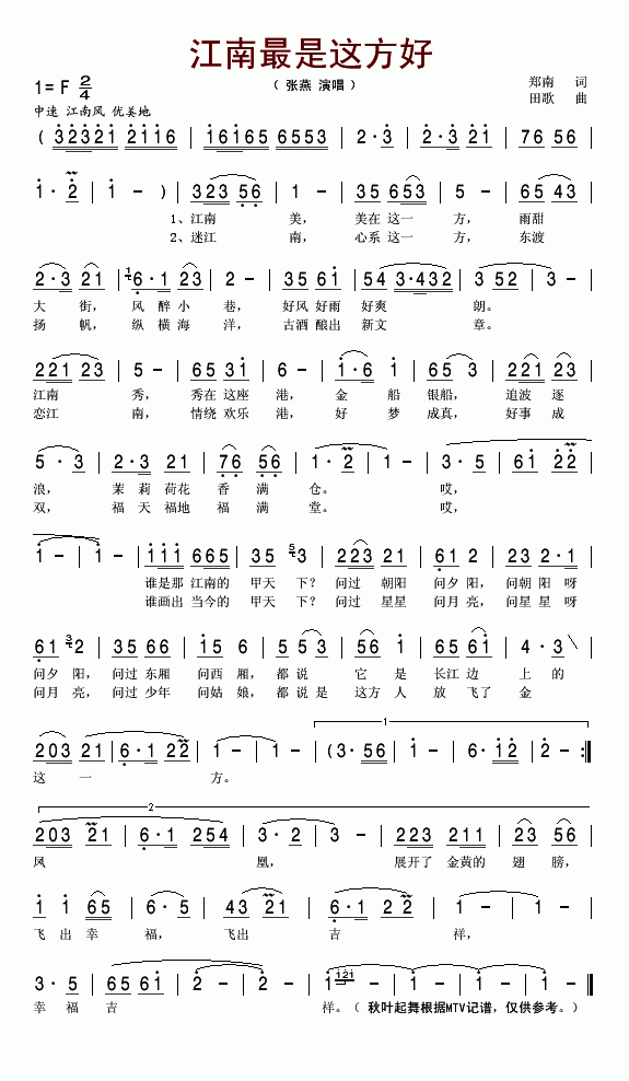 >> 江南最是这方好-张燕(简谱)