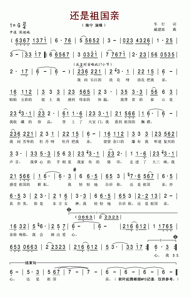 >> 还是祖国亲-陈宁(简谱)