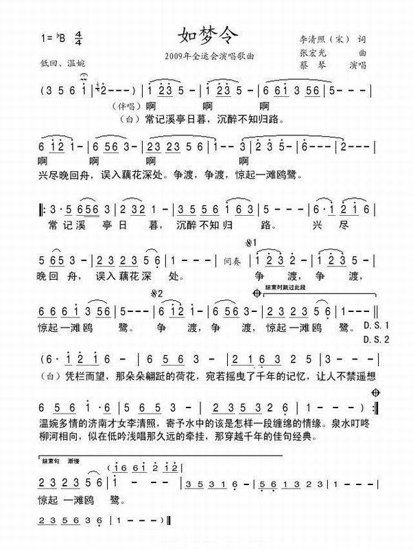 >> 如梦令-蔡琴(简谱)