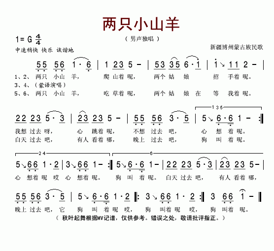 两只小山羊-男声独唱(简谱)