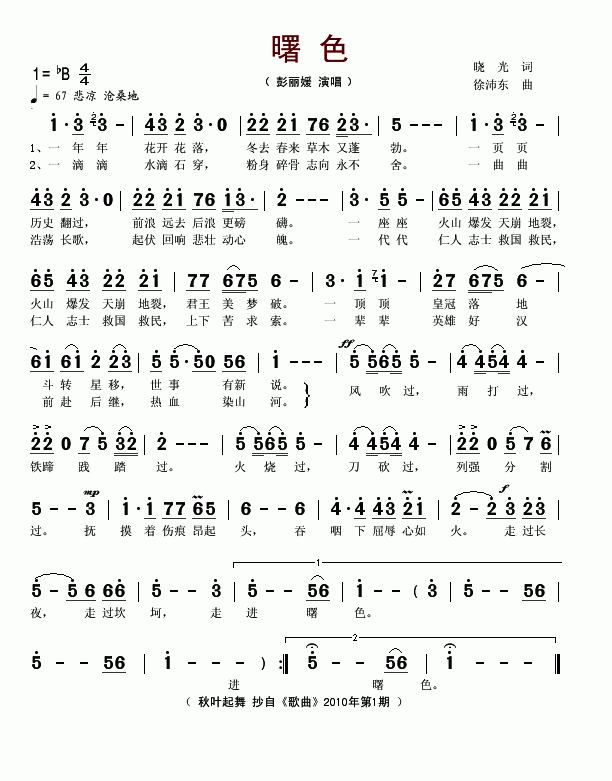 阳光路上-彭丽媛(钢琴谱_五线谱)