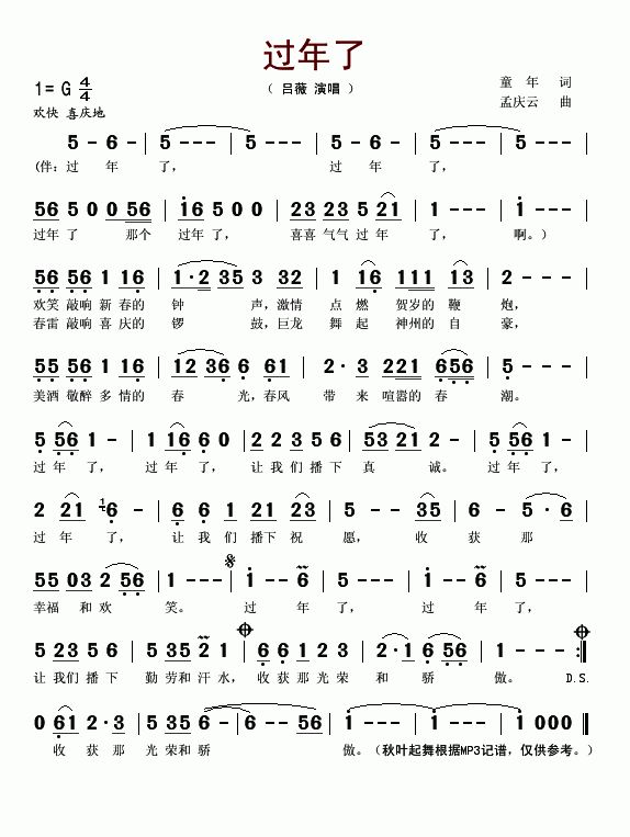 >> 过年了-吕薇(简谱)