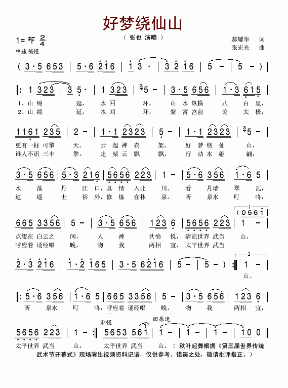 不忘延安-张也(《保卫延安》片尾曲简谱+线谱)