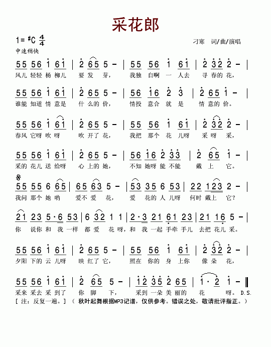 >> 采花郎-刁寒(简谱)
