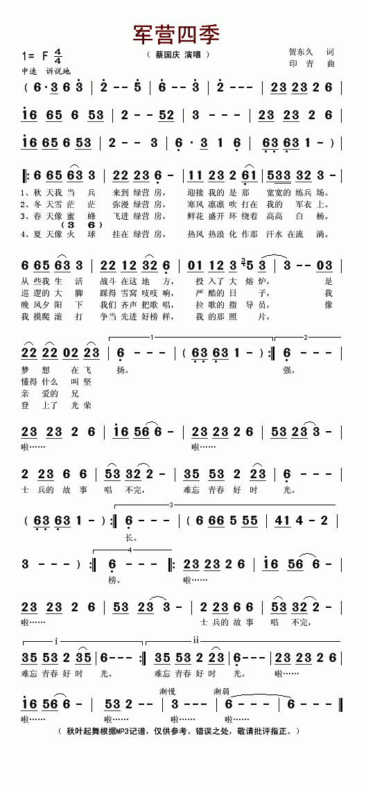 自豪吧中国蓝盔-谭晶 蔡国庆(简谱)