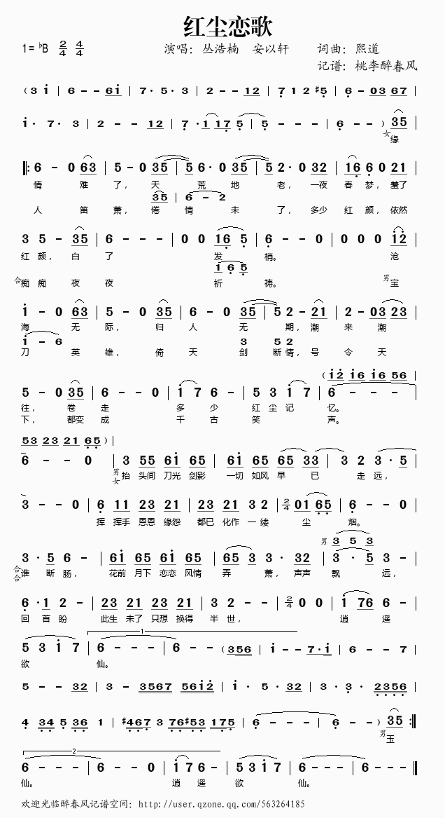 [00:00.09]丛浩楠&安以轩 - 红尘恋歌