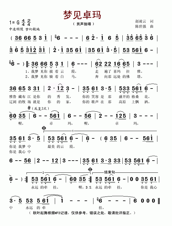 好像和一朵流浪的云儿回家-男声独唱(简谱)