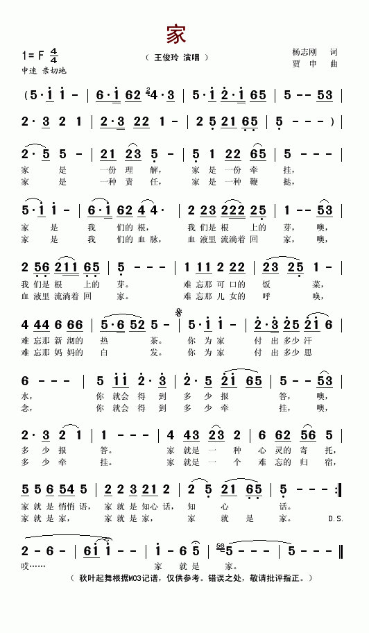 >> 家-王俊玲(简谱)