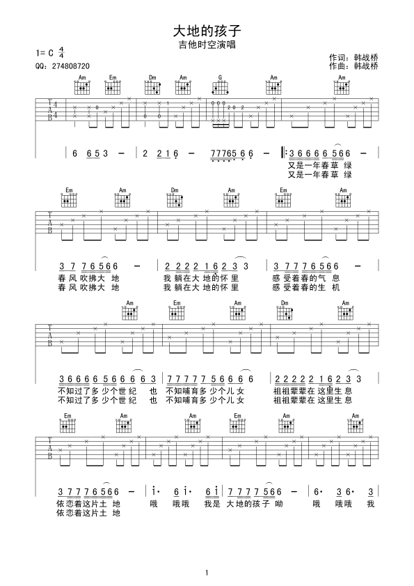 承揽简谱 五线谱 吉他六线谱 打谱业务 联系方式QQ 274808720