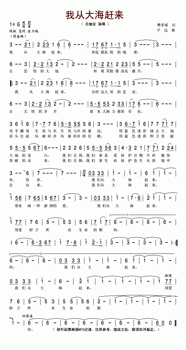 我从大海赶来歌词:
